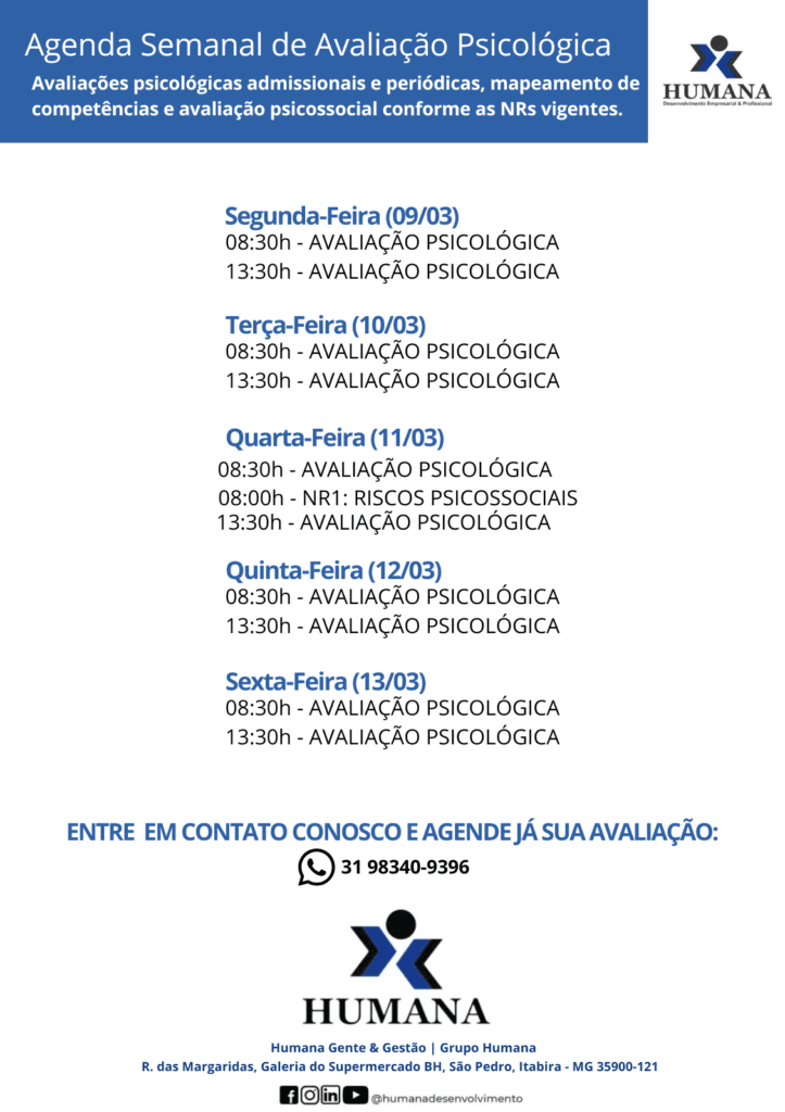 📅 Os dias e horários de atendimento estão na imagem acima. Confira a agenda disponível e programe sua consultoria ou treinamento com antecedência.